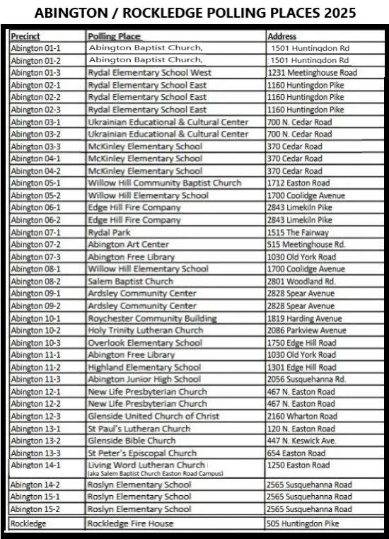 Use this interactive map on the Abington Township website to find the address of your local polling place - as well as more information, like your township commissioner and ward precinct number.